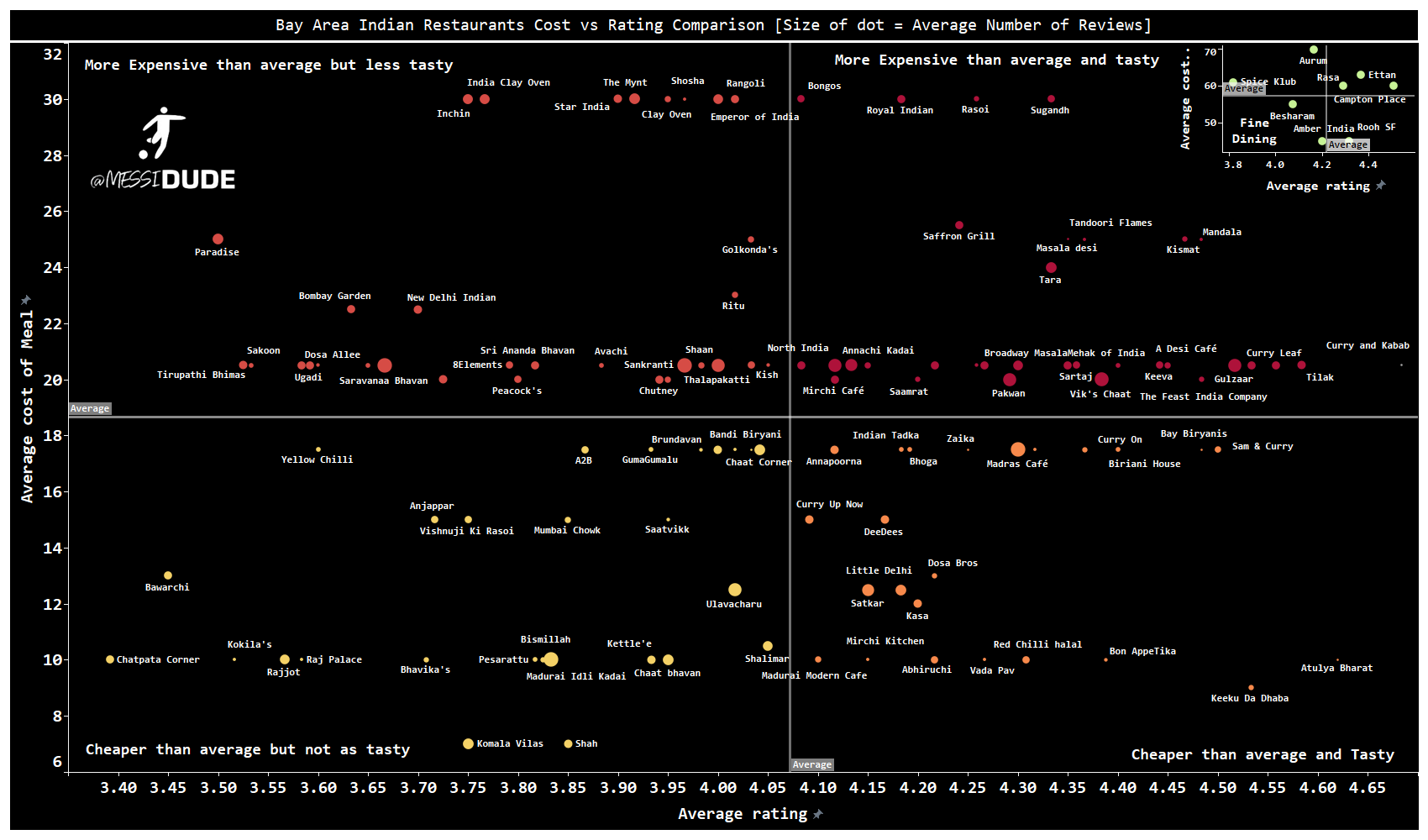 Rajesh Niti On Twitter Finally Got A Chance To Finish This San Francisco Indian Restaurants Cost Vs Ratings Comparison Size Of Dot Number Of Reviews I E More Reviews Bigger Dot Use